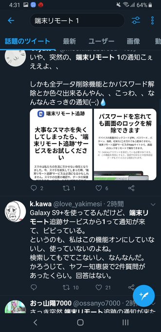 端末リモート追跡サービスとか言うのから1っていう 端末リモート追跡サービスの話題 2020 2 20 木 16時頃 ツイ速クオリティ Twitter